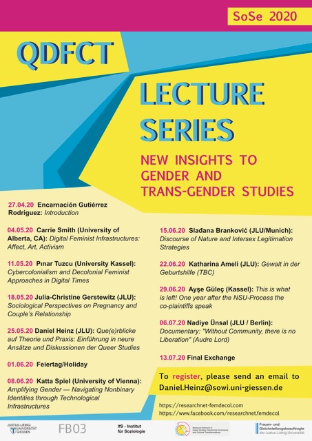 digitale Vorlesungsreihe des QDFCT - Forschungsnetzwerk Queer Studies,