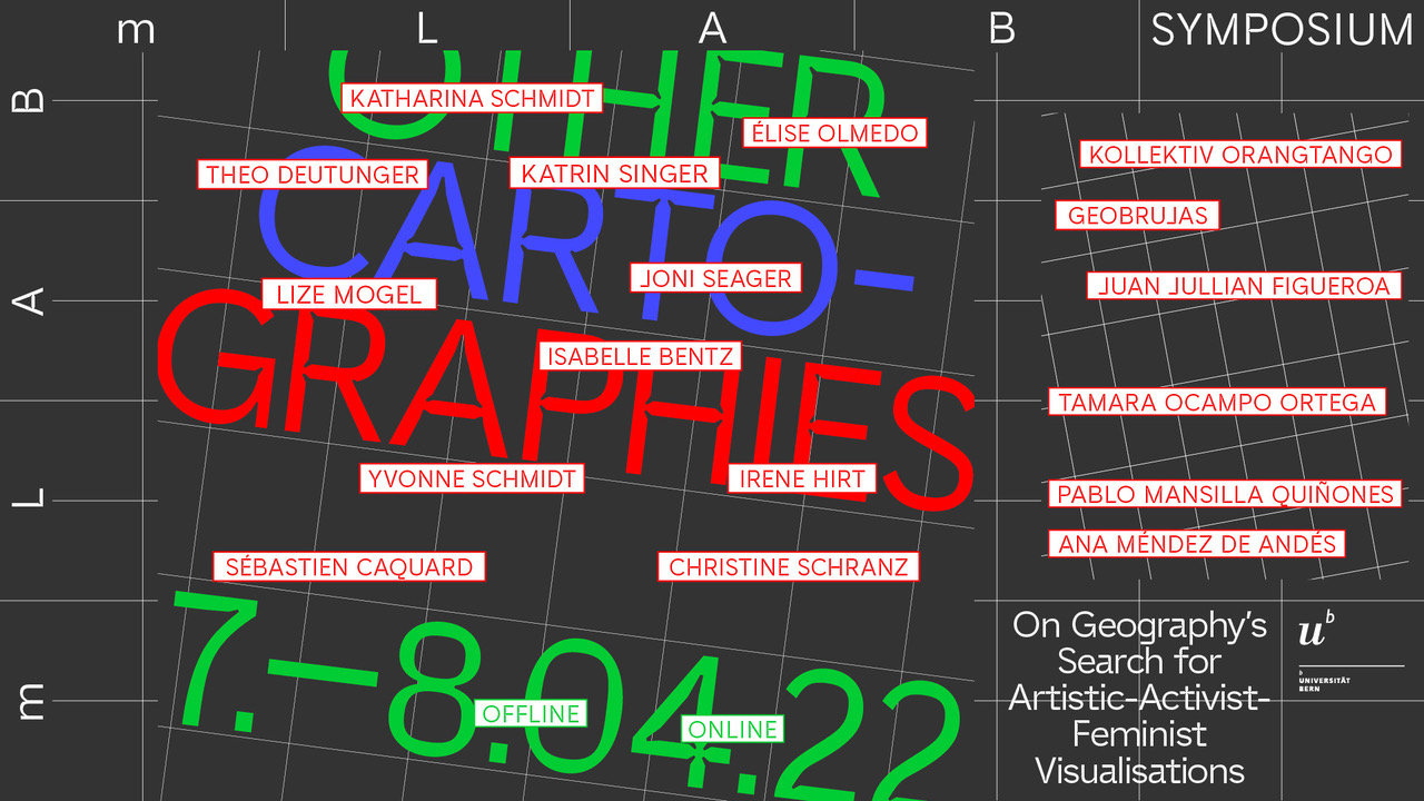 Please join us for OTHER CARTOGRAPHIES, the second mLAB symposium on Geography's Search for artistic-activist-feminist visualisations, on 7-8 April 2022 both in Bern, Switzerland and online.