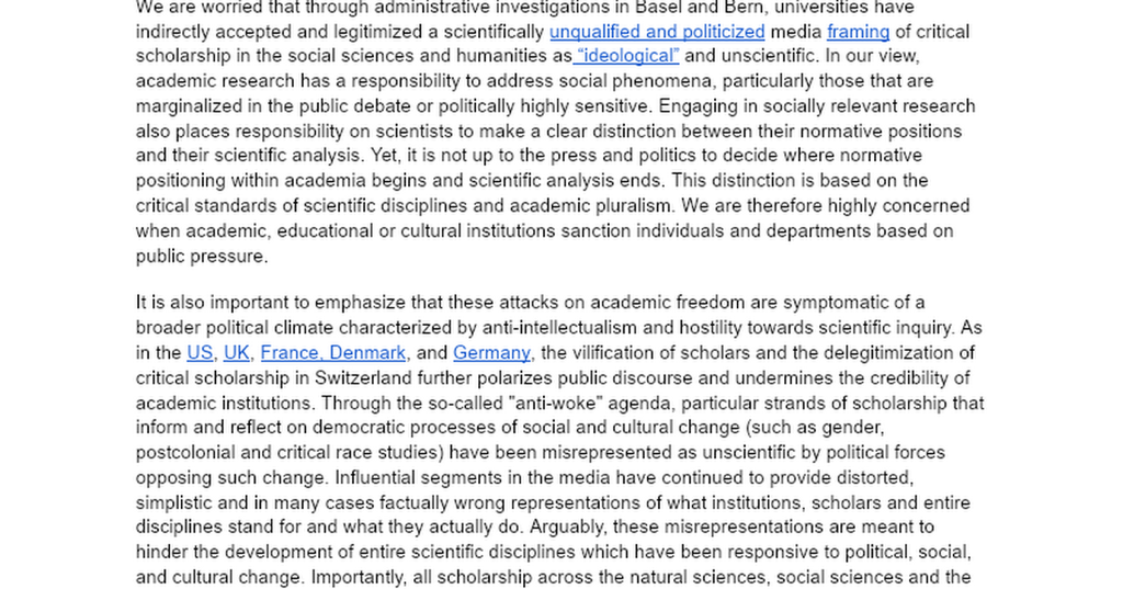 Open letter in defense of academic freedom in Switzerland_EN<https://docs.google.com/document/d/1icRPqMcU6YK-7WCFGu8QK5HvW4uBQgKVhByIyqfZo8Y/edit#heading=h.ubn6t7fkryj9>