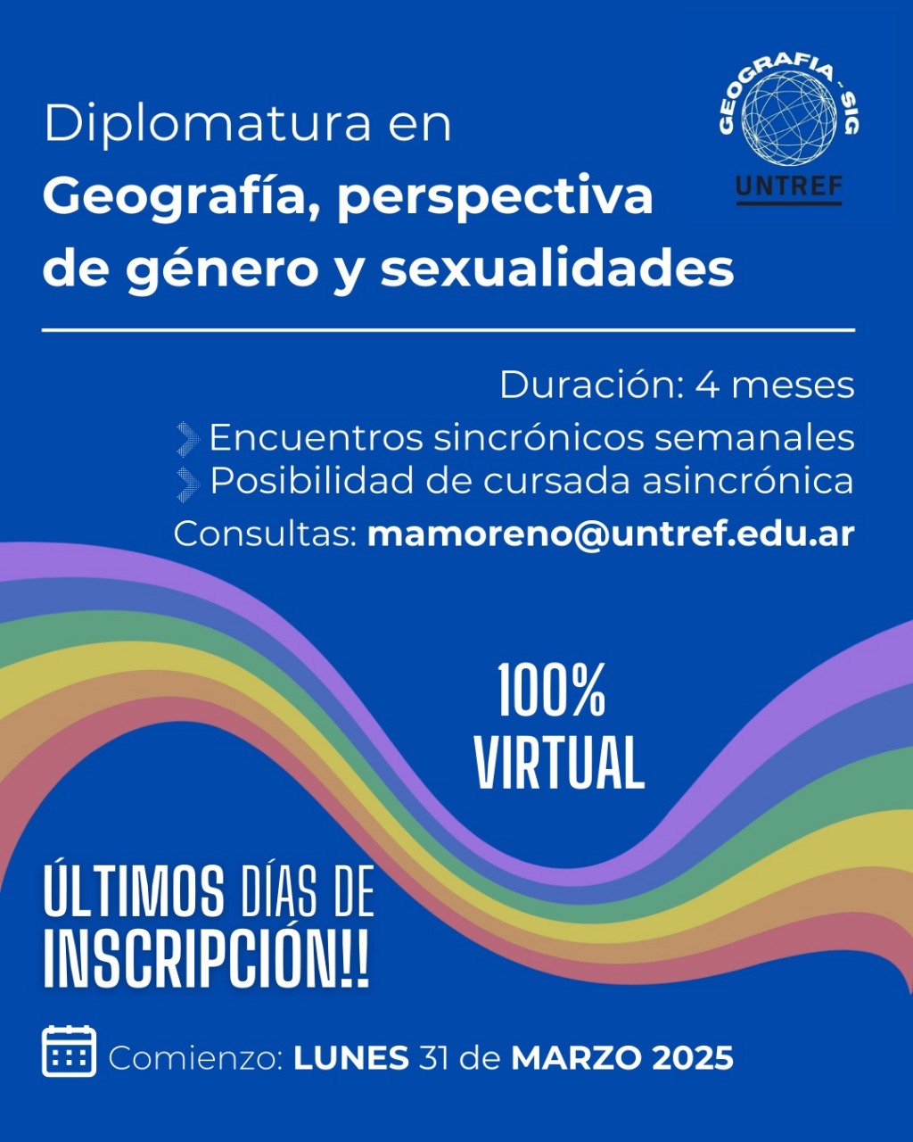 💜 Últimos días de inscripción a la Diplomatura en Geografía, perspectiva de género y sexualidades (UNTREF). Segunda cohorte.